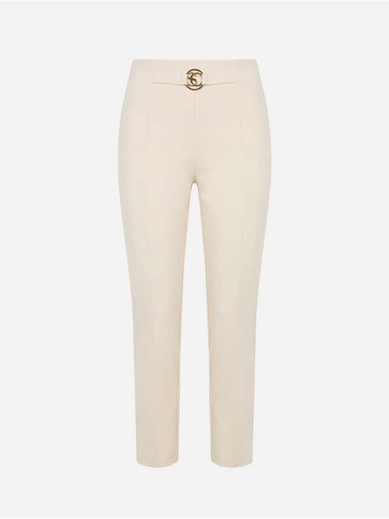 Pantalones clásicos con detalle metálico en el cinturón.