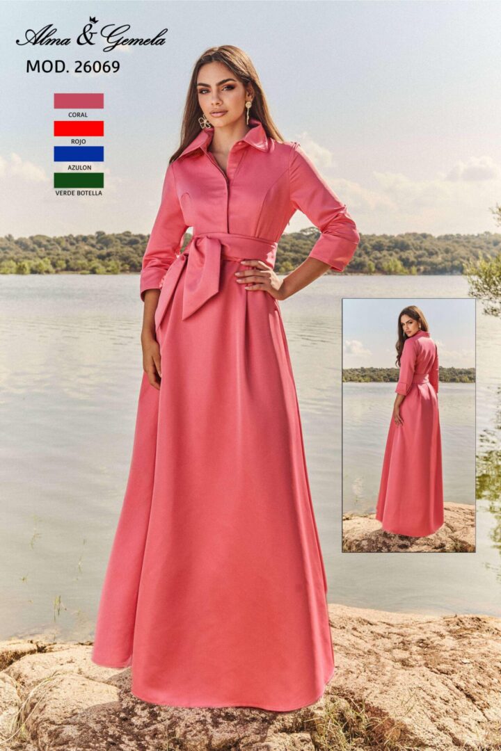 Vestido largo estilo camisero 26069 de Alma Gemela