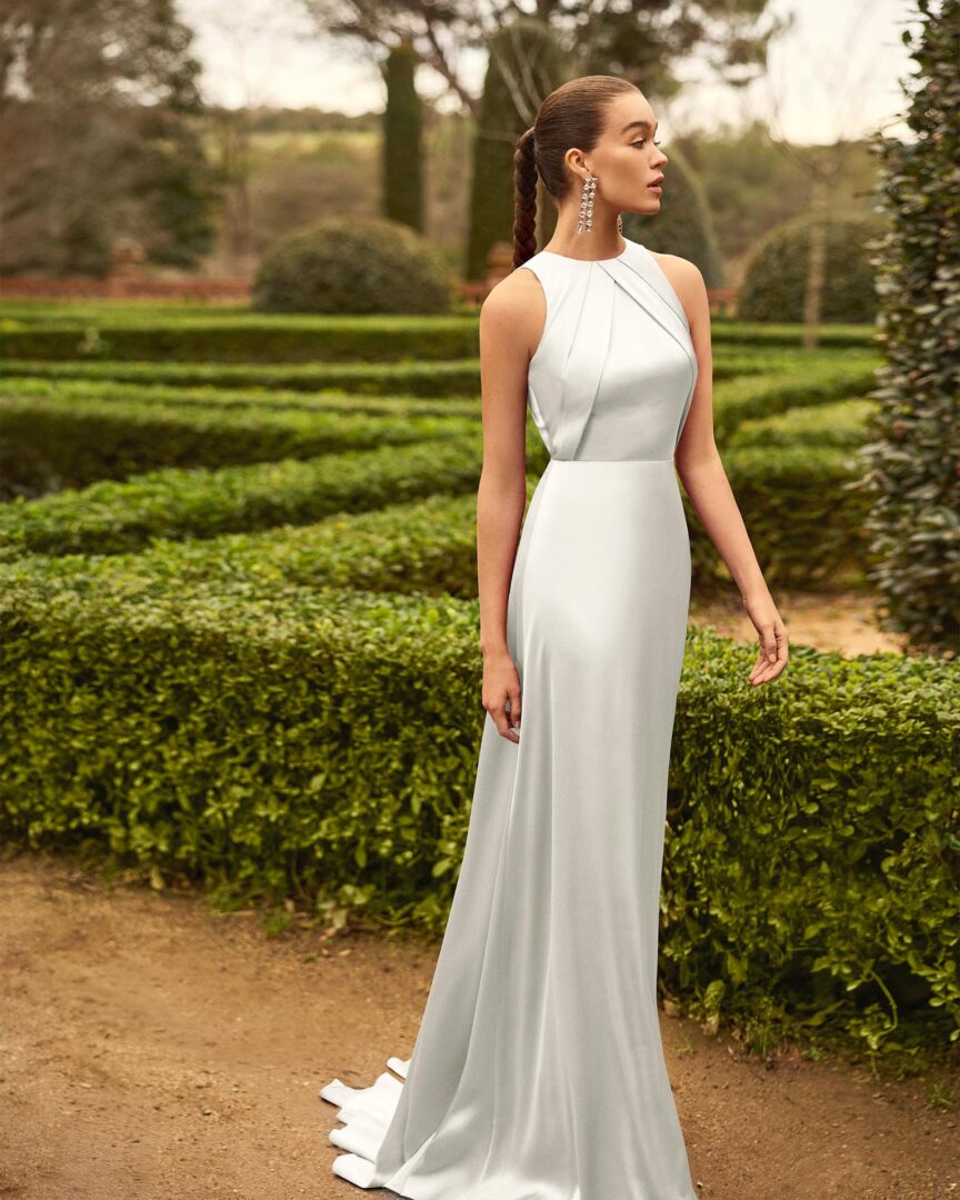 Vestido largo raso texturizado 1JC7 de Marfil Barcelona