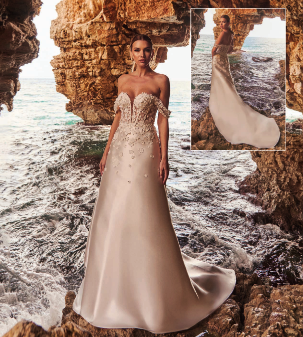 Vestido de novia flores bordadas sin mangas 685 de Alma Couture