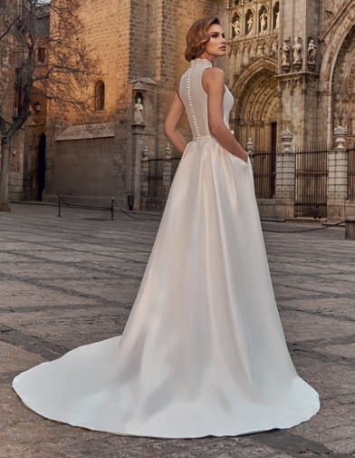 Vestido de novia liso y cuello mao 615 de Alma Couture