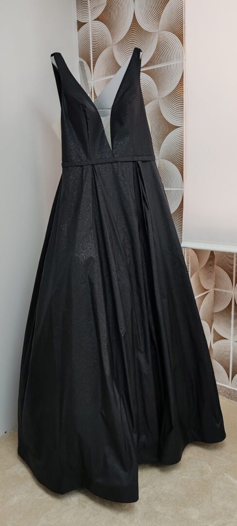 Vestido de fiesta largo en color negro con brillos de XM Collection.