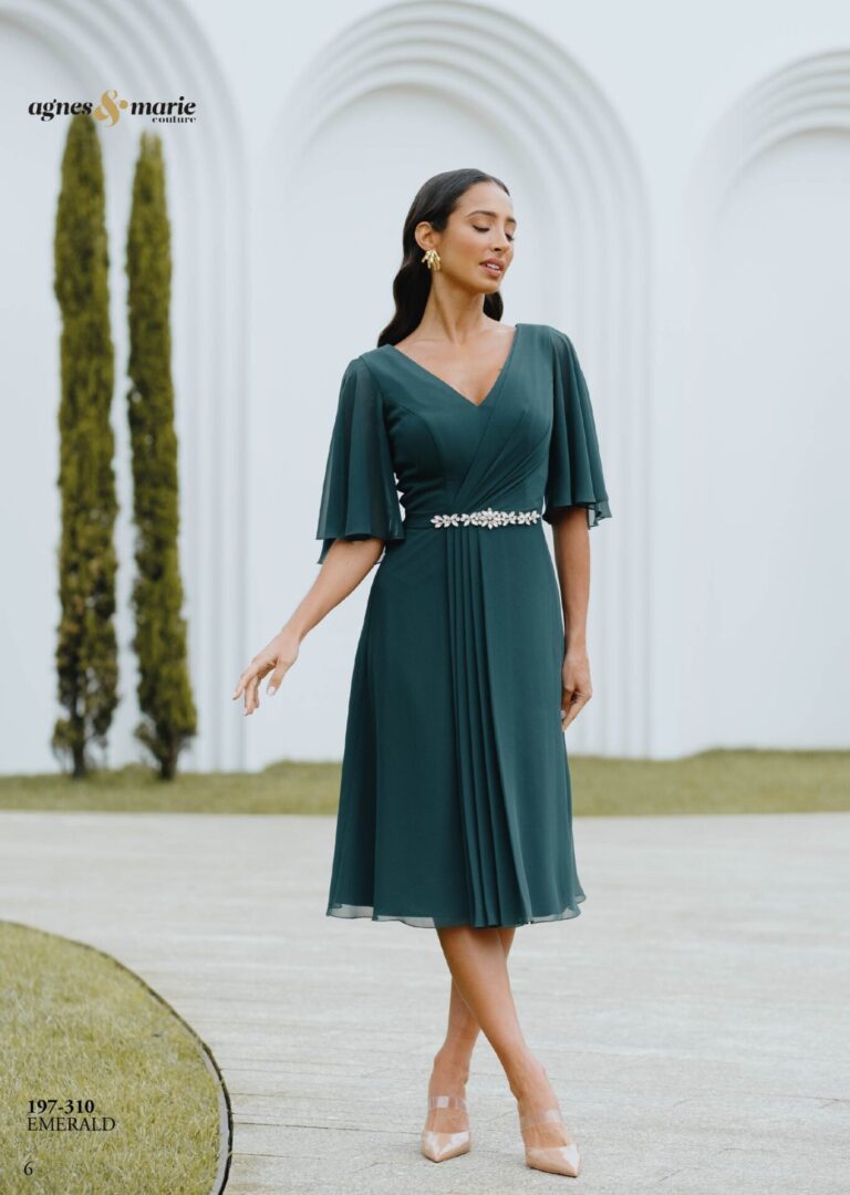 Vestido midi de fiesta gasa 197-310 de Agnes Marie Couture